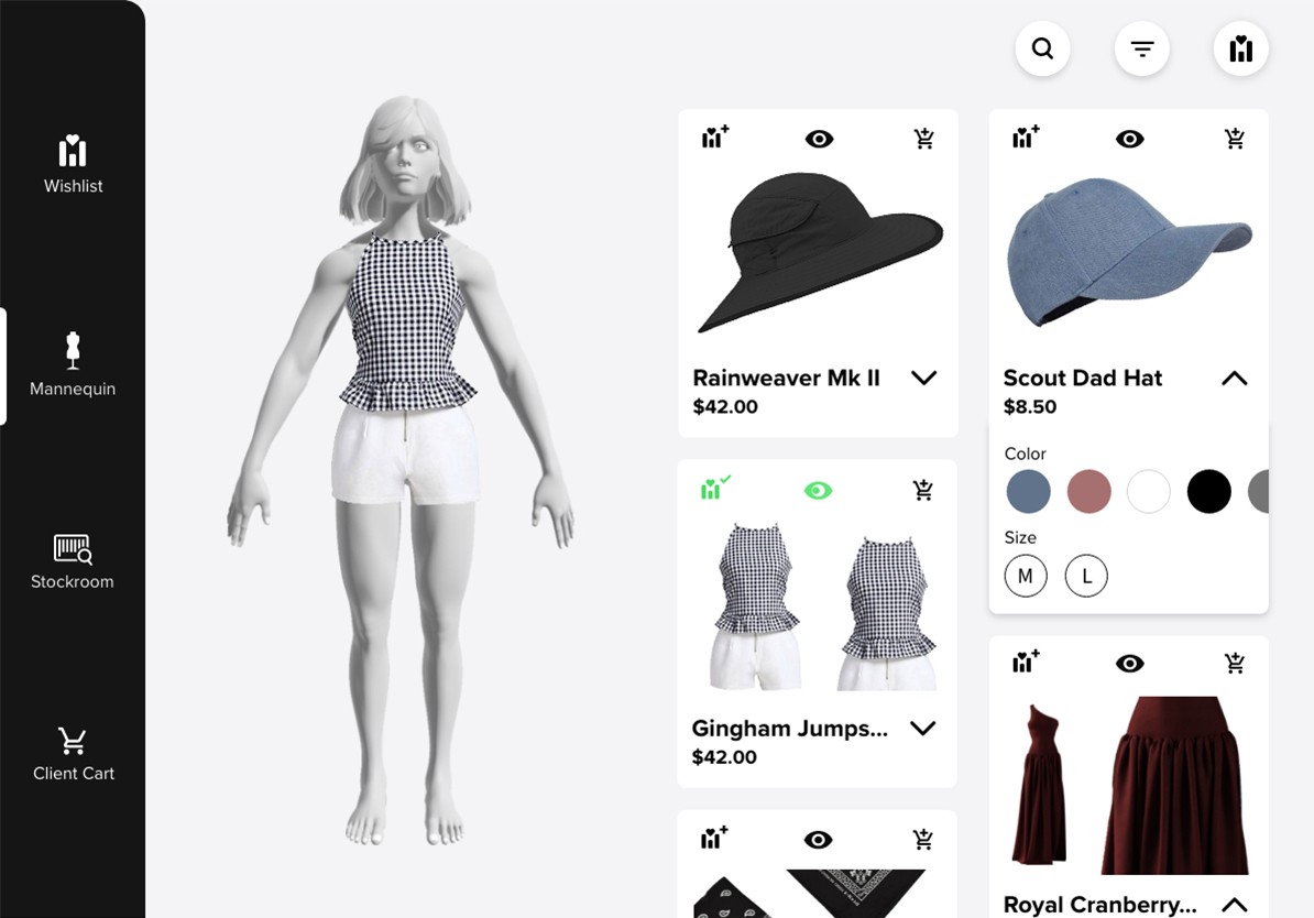 Ability to view any combination of clothes on a Mannequin or person, not just flat clothing images.