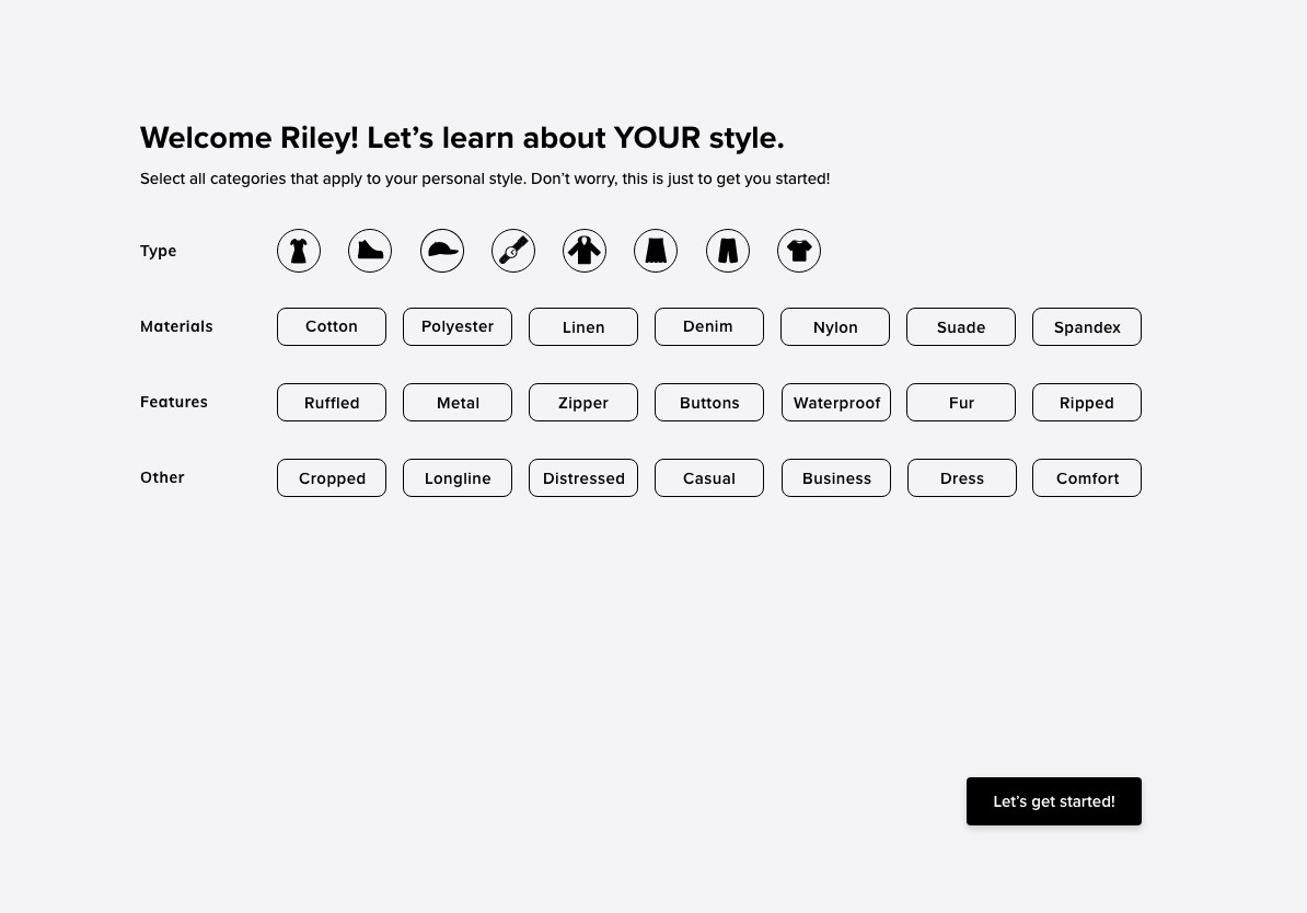 Two close friends have styled clients for multiple boutique companies, in-store and online. My timeframe for the projects was brief, so my user interviews were short but thorough. The key information gathered was: