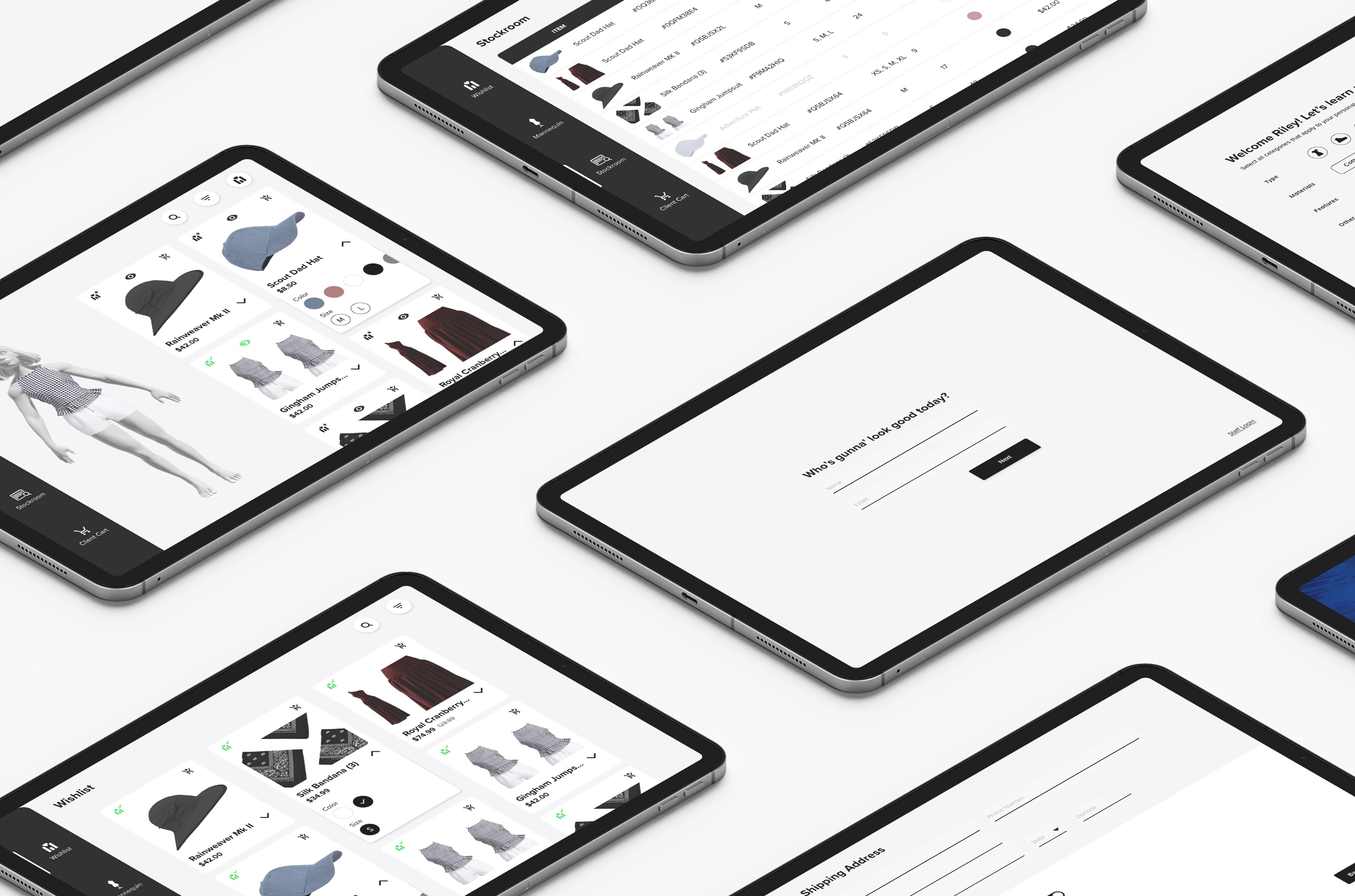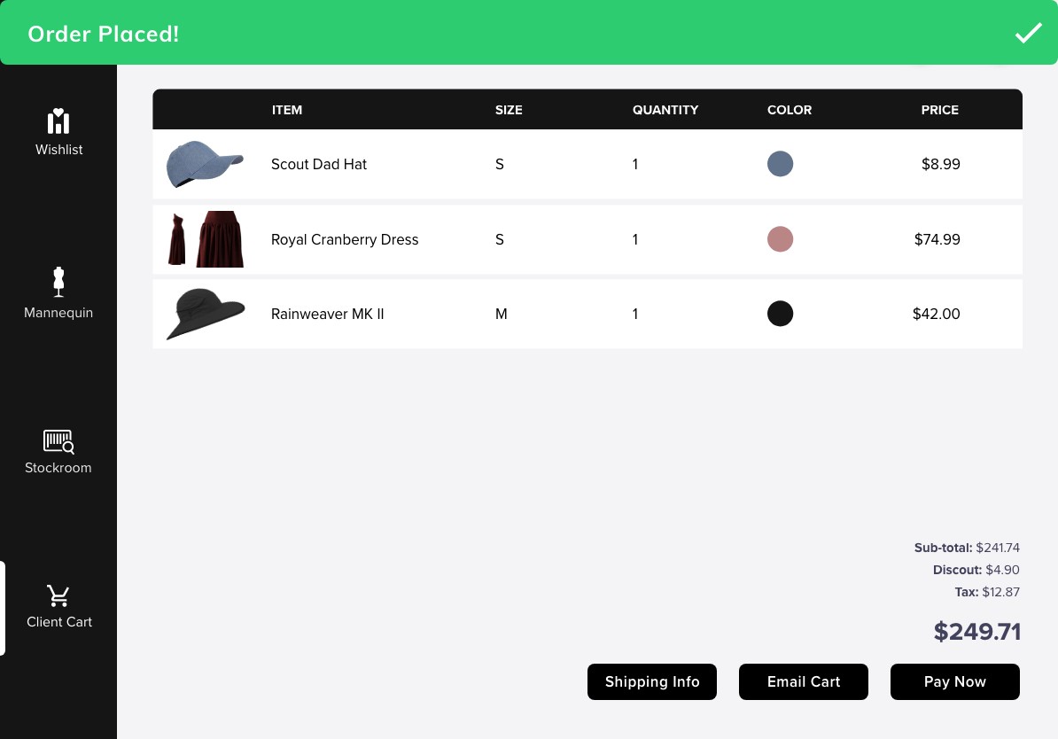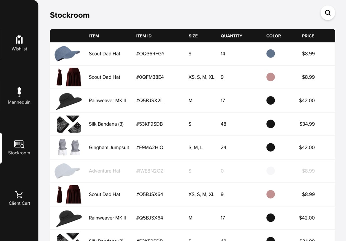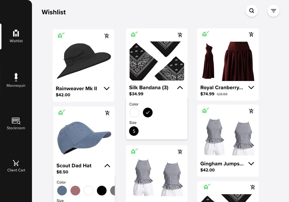 Boutique stylists often struggle with helping clients find the correct articles of clothing due to limited store stock, colors & sizes available, and lack of a mobile program to keep track of client preferences.