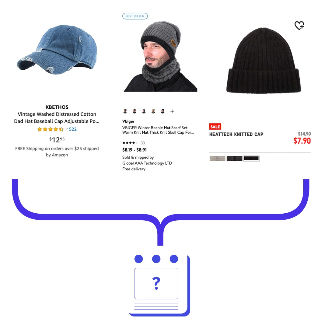 To form the information hierarchy of Mannequin's product cards, I analyzed three industry-leading retailers's tablet-based apps to determine currently functioning designs: Amazon, Walmart, & Uniqlo. Each retailer emphasized different factors, leading me to decide how I wanted Mannequin's cards to display this info: