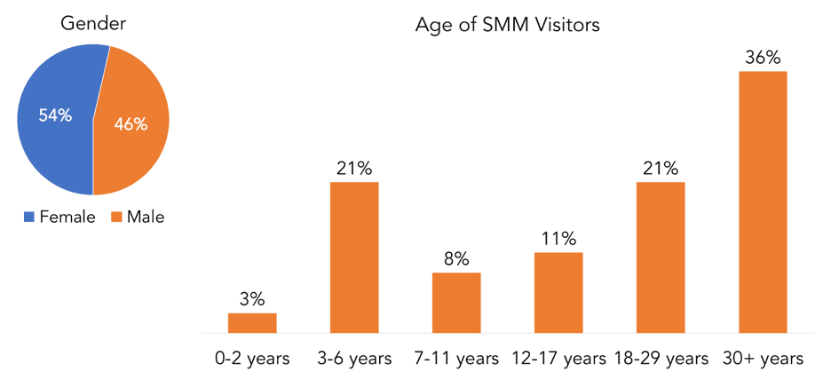 Research was conducted to find museum attendee behavior. Demographics are displayed at the bottom. Our overarching research question was: How do museum visitors interact with the areas in the paleo exhibit without AR?