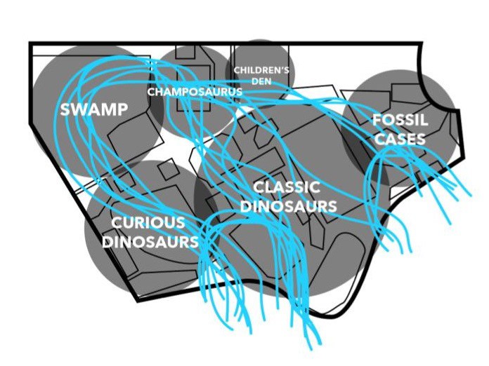 Heatmap of visitor path through the paleo exhibit