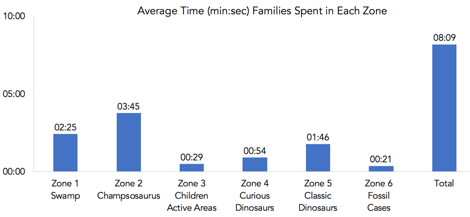 Average time spent in each zone of the paleo exhibit