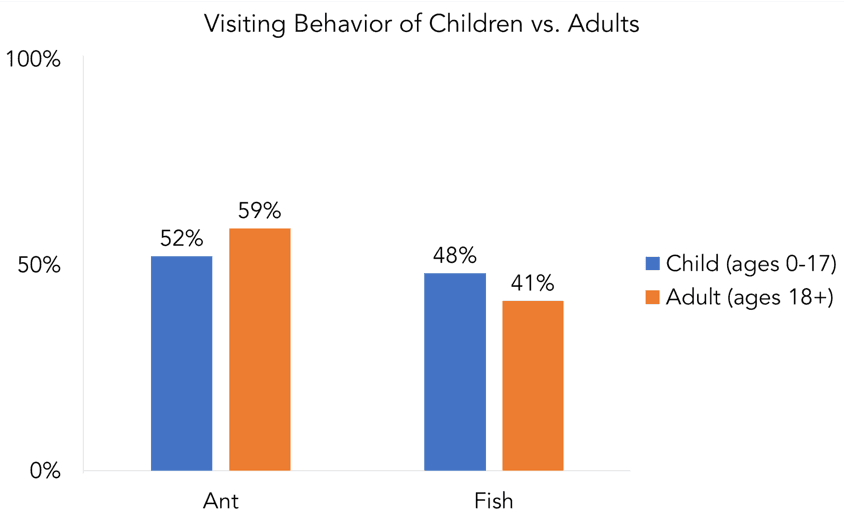 Visiting behavior of children vs adults